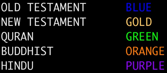 - When finished, SAVE your selections and find from which religions the selected color-coded texts originated.